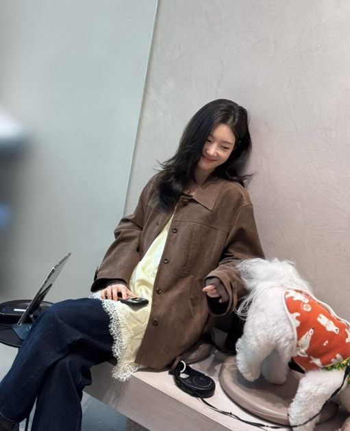 - 옷에 관심 있으신 분들 참고 바랍니다! - 안녕하세요, 이색물감입니다.요즘 낮에는 포근한데 아침저녁으로는 아직 쌀쌀해서 아우터 뭐 입어야 할지 고민되시죠?이럴 땐 참고하기 딱 좋은 룩을 보여준 정채연 배우인데요. 산책 나왔을 뿐인데 화보 같은 분위기,역시 사복 장인이라는 말이 괜히 나오는 게 아니더라고요. 이번 정채연 간절기 코디의 핵심은 브라운 스웨이드 자켓이에요. 가죽처럼 강하지 않으면서도니트 가디건보다 훨씬 분위기 있는 선택. 부드러운 텍스터 덕분에 봄 햇살이랑도 잘 어울리고, 컬러 자체가 차분해서 데일일로 활용하기 좋아보여요. 전체적인 무드는 내추럴한데, 소재 덕분에밋밋하지 않다는게 포인트예요. 특히 인상적이었던 건 레이스 이너와의 레이어드. 스웨이드의 살짝 매트한 질감 위로 크림 톤 레..