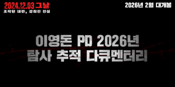 2026년 2월 4일에 개봉한 다큐멘터리 영화 '2024.12.03 그날 조작된 내란, 감춰진 진실'은 2024년 12월 3일에 발생한 비상계엄 사태를 다루고 있습니다. 이 작품은 한국사 강사 출신 유튜버 전한길 씨가 제작하고 방송인 이영돈 PD가 연출한 141분 분량의 다큐멘터리로, 12세 이상 관람가 등급을 받았습니다.