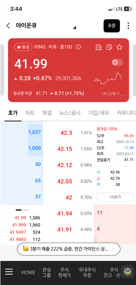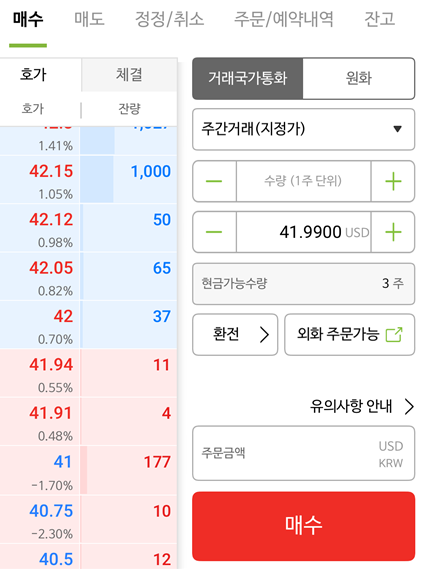 그림 왼쪽을 보시면 파란색은 매도 파는 사람이고, 빨간색은 매수를 하시는 사람들입니다.