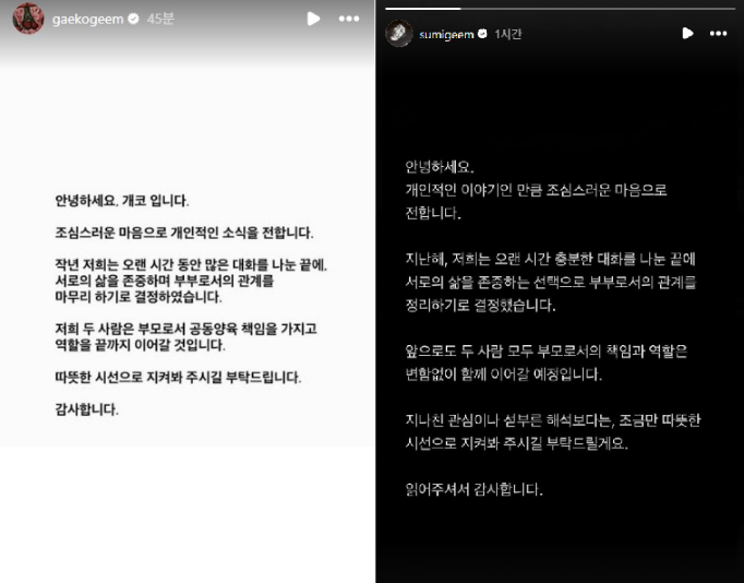 특히 두 사람이 공통적으로 "부모로서의 책임은 끝까지 이어간다"고 강조한 부분은 많은 이들에게 인상적으로 남고 있습니다.