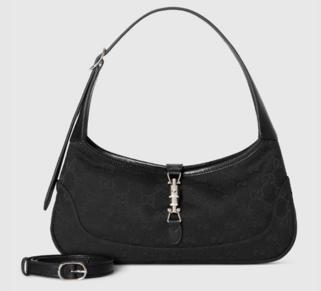 함께 매치한 재키 슬림 스몰 숄더백은 GG 캔버스 소재로 제작돼 가볍지만 구조감은 탄탄해요. 실버 톤