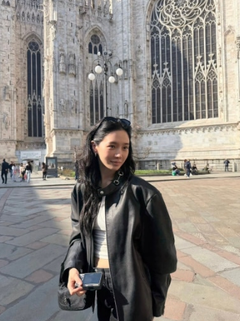 1000만원대 구찌 가죽 자켓 코디를 한 박규영 너무 예쁘네요! 밀라노에 도착한 박규영의 올블래 록,