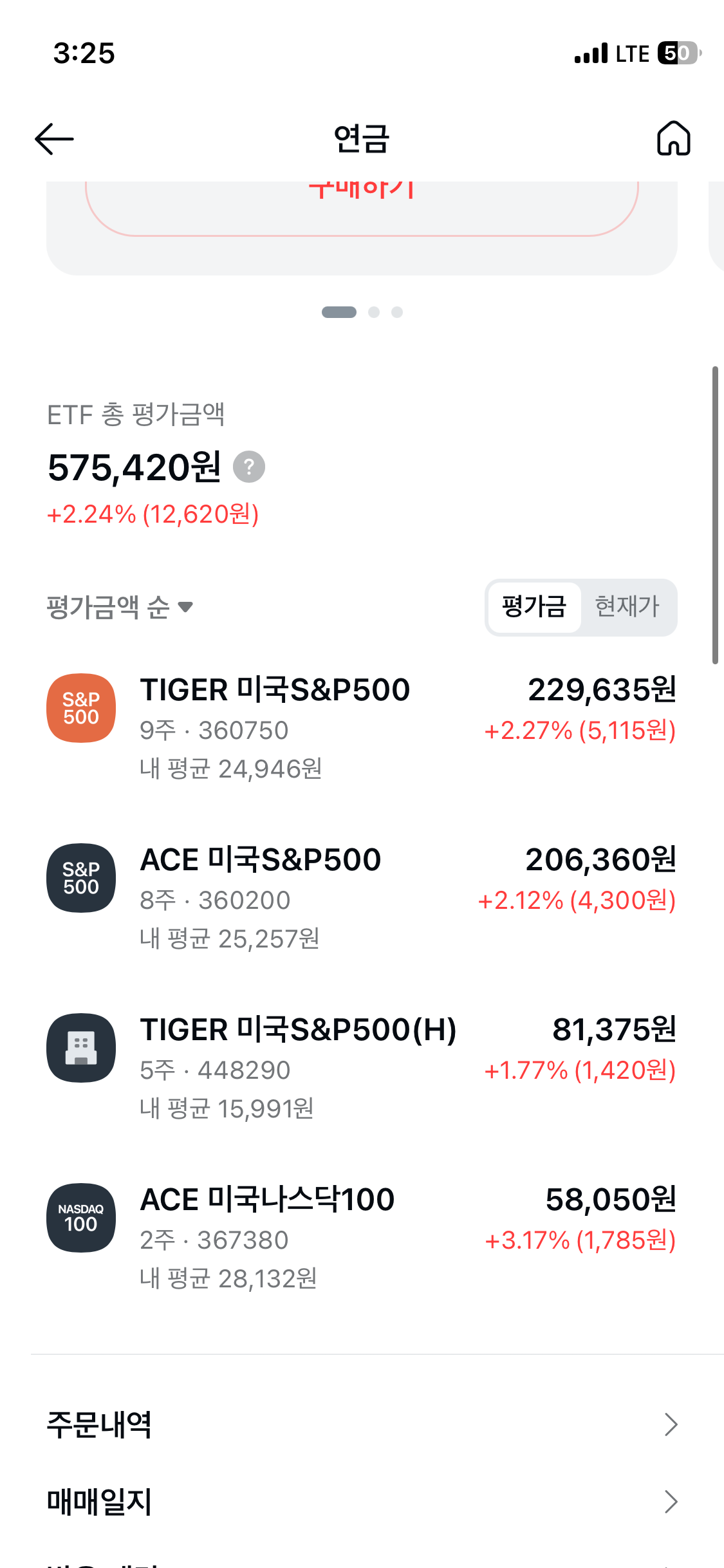 그리고 S&P500을 TIGER / ACE 두 개로 나눈 이유는 그냥 분산 + 테스트 느낌으로 사봤습니다.