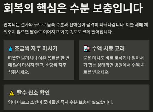3. 수분 보충이 회복의 핵심입니다.