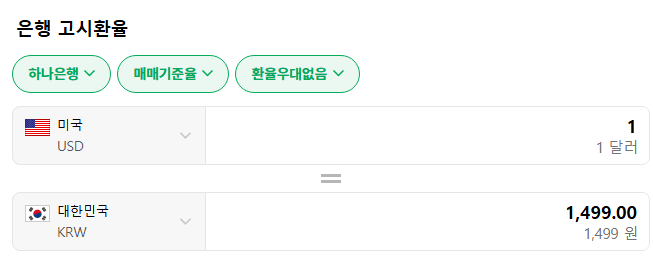 5. 오늘 1달러 환율은 1,499원