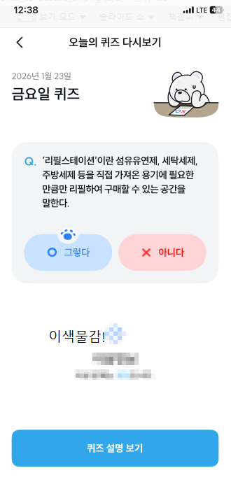 | 기후행동 기회소득 1월 24일 퀴즈 정답 (바로보기) (1) | 2026.01.24 |