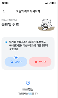 오늘 2026년 기후행동 기회소득 1월 29일 퀴즈 정답과 그 이유를 알려드렸습니다.