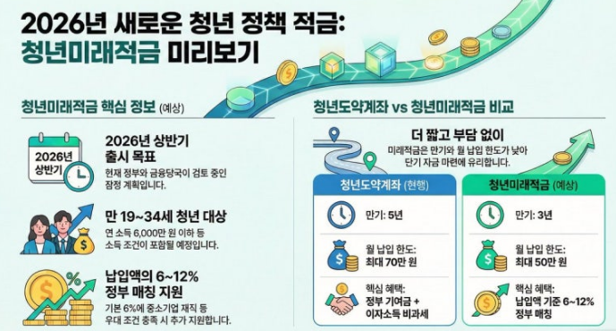 기존 청년도약계좌의 긴 만기 (5년) 부담을 줄이고, 지원 대상은 프리랜서와 소상공인까지 대폭 넓힌 것이 핵심입니다.