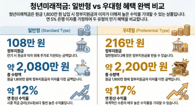 - 우대형 (최대 혜택) : 납입액의 약 12% 추가 지원