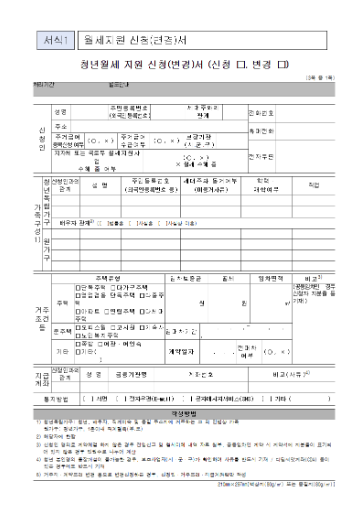 - 청년(기혼): 청년 및 배우자 가족관계증명서, 청년의 부·모 및 배우자의 부·모의 가족관계증명서(상세증명서)